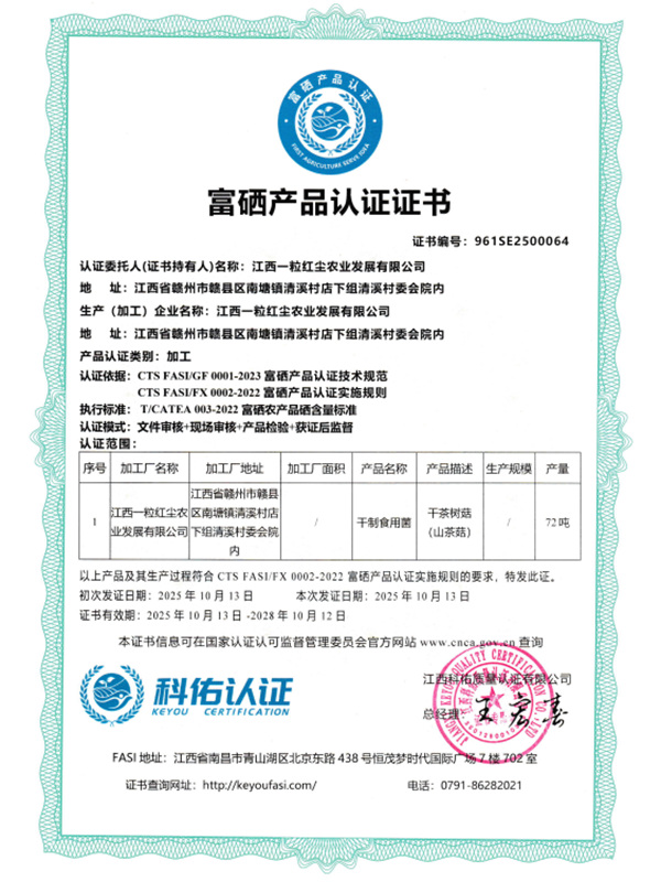 江西一粒紅塵農業發展有限公司是一家總部位于江西省贛縣的現代農業多元型企業,專注于食用菌的研發、種植、深加工、貿易、研教培農文旅等全產業鏈發展。公司秉承“健康綠色、共享、共贏”的核心價值觀,致力于引領鄉村振興之路,旨在成為......